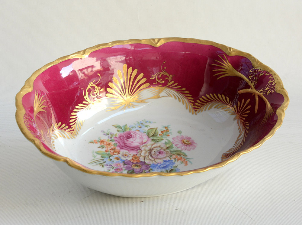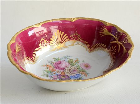 Manifattura di Limoges, centrotavola ovale in porcellana policroma, sec. XX (cm 26x20) (lievi difetti)