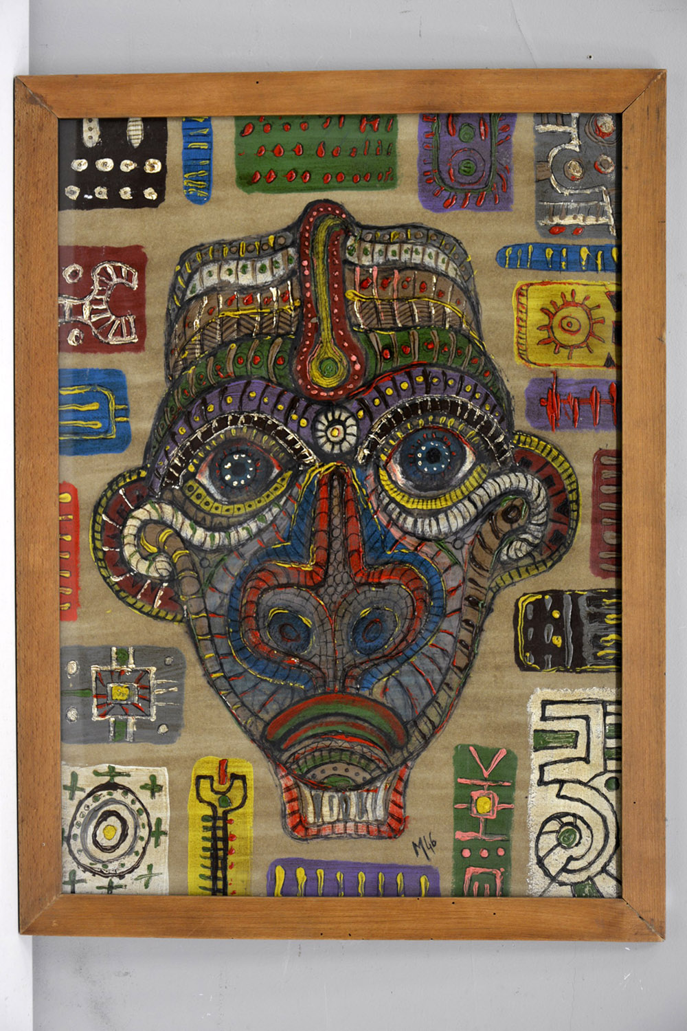 Anonimo. "Figura" acrilico su carta (cm 70 x 50) siglato M46 in basso, in cornice