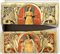 Coppia di formelle in legno dipinto raffiguranti figure allegoriche della...