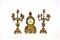 Trittico da camino in bronzo dorato composto da pendola e deu candelieri a cinque fiamme (difetti)