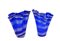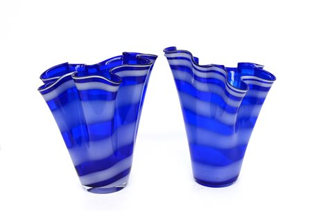 Coppia di vasi a fazzoletto in vetro blu decorato a striature (h cm 31 ca)