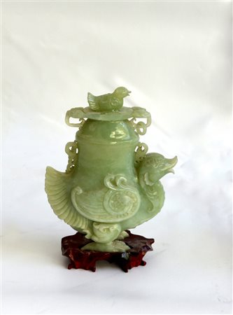Vaso arcaico a forma di volatile fantastico in pietra dura Cina, sec. XX (h....