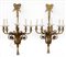Coppia di appliques a cinque fiamme in metallo dorato con braccia sagomate,...