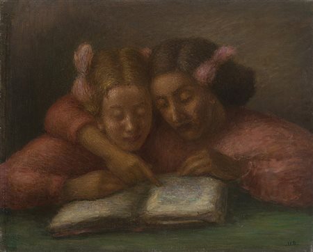 Ugo Bernasconi Buenos Aires 1874 Cantù 1960 "Fanciulle che leggono" olio su tela (cm 50x62) Reca sigla postuma in basso a destra In cornice
