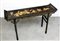 Altare da parete in legno laccato nero con dorature. Piano con bordi rialzati...