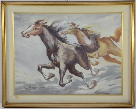 Musso W. "Cavalli" tecnica mista su masonite (cm 43x58) firmato in basso a...