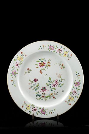Piatto in porcellana policroma. Etichetta Pietro Accorsi