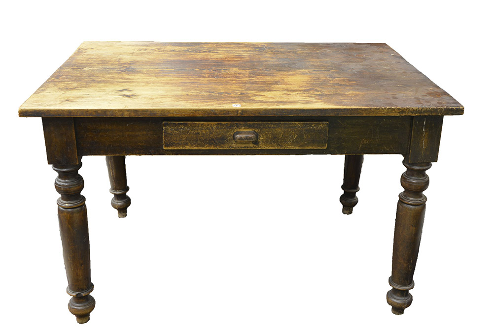 Tavolo da guardaroba in legno dolce. Gambe tornite (cm 130x81x90) (difetti)