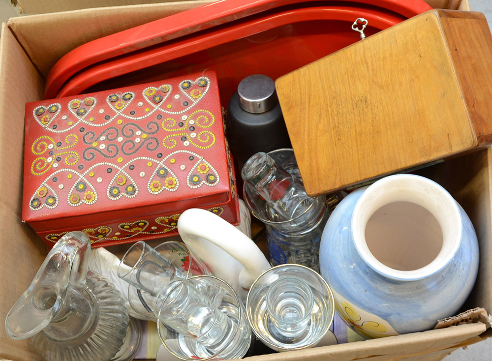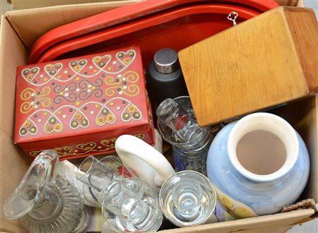 Cartone contenente numerosi oggetti di materiali e forme diverse (difetti)
