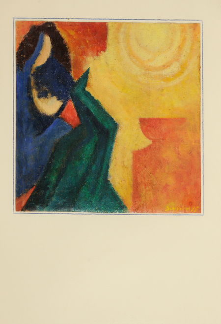 Lori Scarpellini Pisa 1934 Il pianeta blu è una strada nel sole, 1995 Olio su tela riportata su carta, cm. 37,5x36,5 Firma e data in basso a destra.
