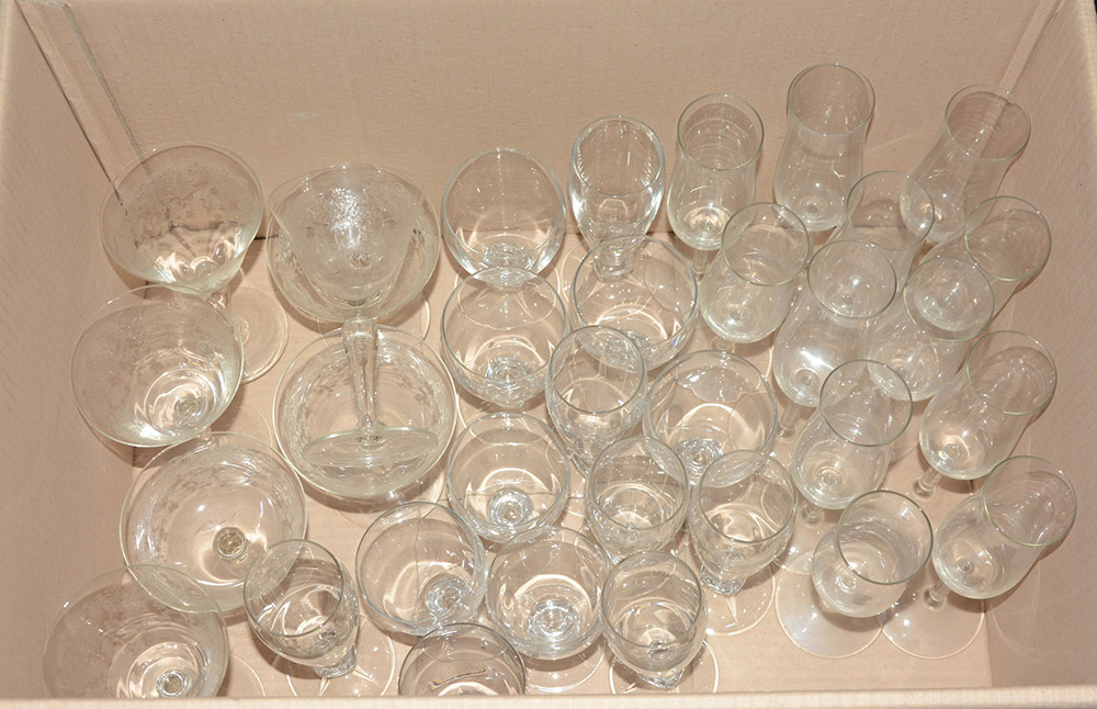 Cartone contenente numerosi bicchieri di misure e fatture diverse (difetti)