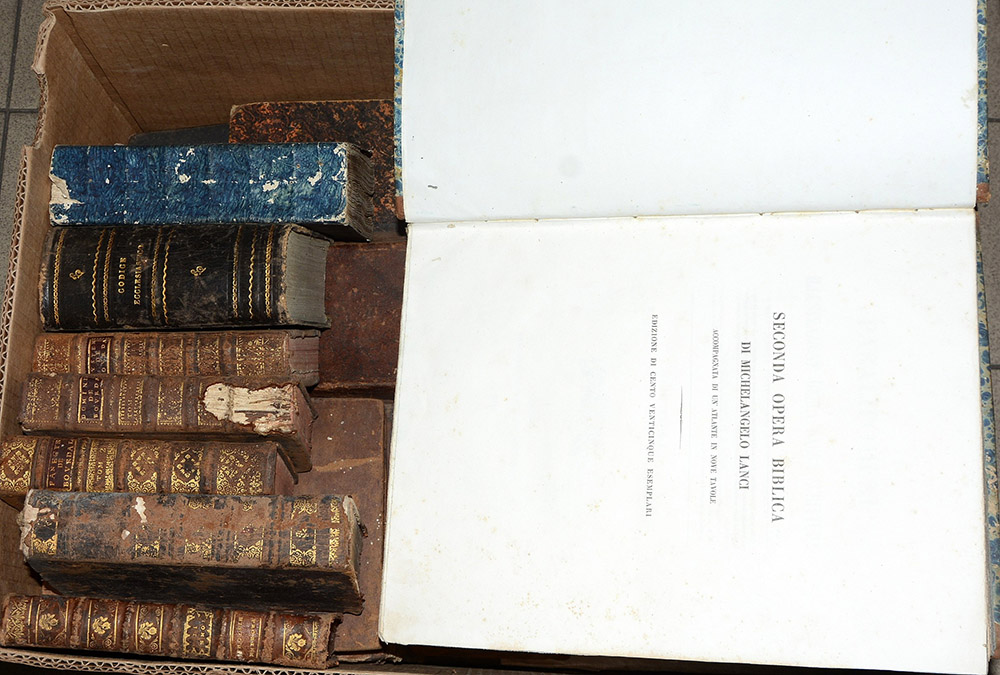 Cartone contenente numerosi volumi d'argomento teologico-religioso, editi per la maggior parte nel secolo XIX.