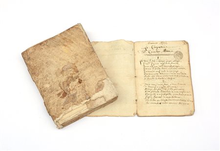 Lotto composto da: - manoscritto attribuibile ai secoli XVII-XVIII secolo contenente le Poesie del Cavalier Marino (1569-1625), poeta d'epoca barocca e scrittore italiano, cittadino del Regno di Napoli. Legatura cartonata coeva. - Manoscritto miscellaneo d'argomento filosofico-teologico. Secolo XVII? Legatura in piena pergamena coeva (difetti).