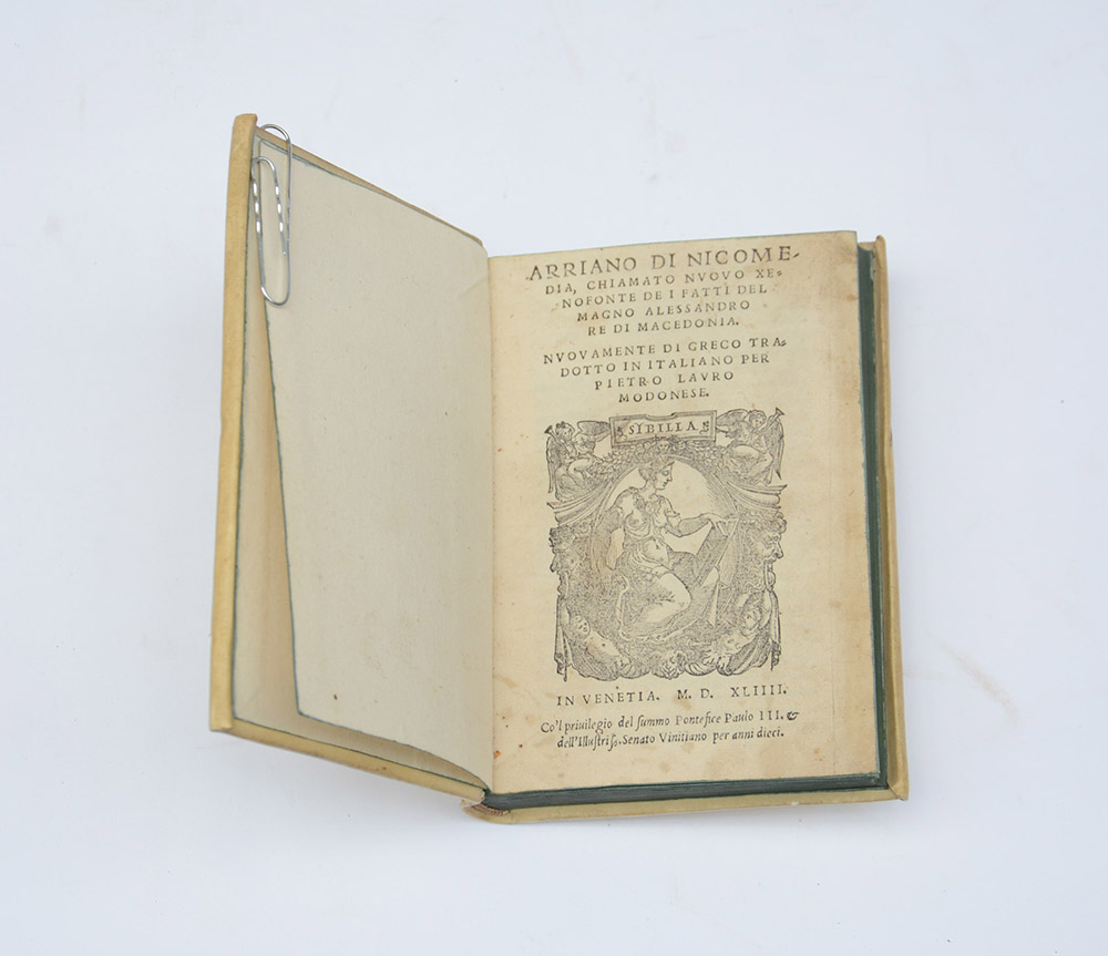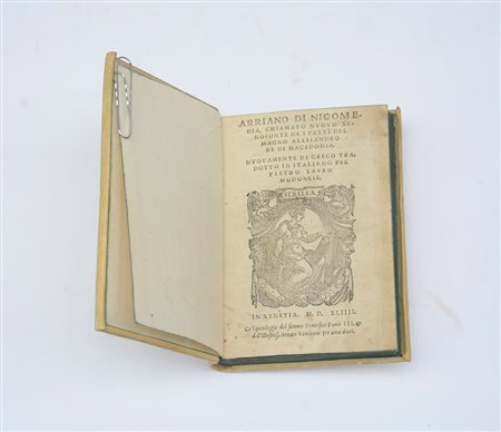 Arriano di Nicomedia... Venezia: Michele Tramezzino, 1544. 8vo (144 x 100mm). Legatura posteriore in piega pergamena, taglio azzurro. BELLA COPIA.