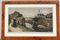"Paesaggio con signora e ponte". Acquatinta (450x780 mm) a colori, firma indecifrata. In cornice.
