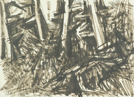 Vinicio Berti Firenze 1921 - Firenze 1991 Senza titolo, 1957 Tecnica mista su carta, cm. 33x45 Firma e data in basso a sinistra.