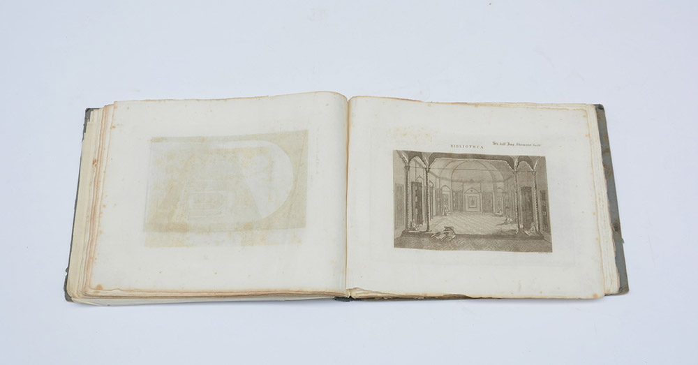 Raccolta di tavole numerate in modo discontinuo, frutto di un accorpamento da opere diverse (difetti). Formato oblungo. Legatura con piatti e dorso in cartone azzurro, titolo manoscritto al dorso (difetti).