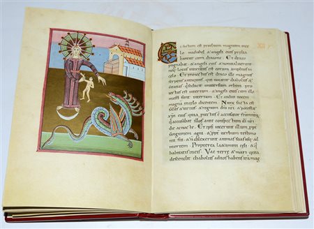 (Libri-facsimile) L'Apocalisse di Bamberg, facs. del ms. Bibl. 140 della Staatbibliothek di Bamberg. (Faksimile Verlag Luzern) Roma, Salerno Editrice 2005. Volume riproducente il manoscritto dell'Apocalisse di S. Giovanni e il lezionario dei Vangeli con le miniature a colori e in oro. Legatura in pieno vitello rosso. Allegato un commentario. Tiratura limitata a 980 esemplari