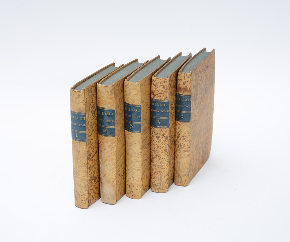 Abate Millot. Elementi di Storia Generale antica e moderna. Venezia: Giacomo Constantini, 1803. Cinque volumi. Legatura cartonata (lievi difetti).