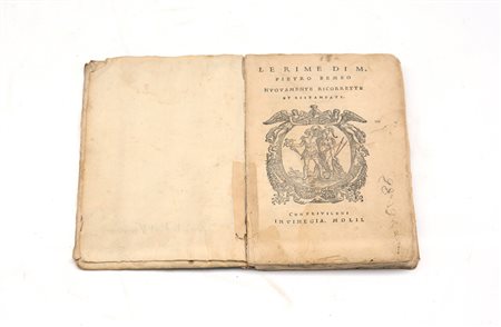 Bembo, Pietro. Le Rime. Venezia: Gualtiero Scoto, 1552. Marca tipografica sul frontespizio. Legatura cartonata (un po' rovinata).
