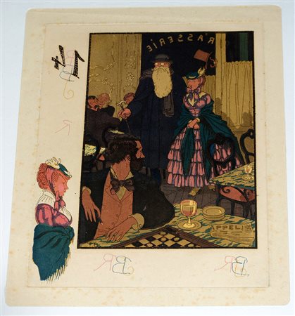 Pierre Brissaud 1885 1964 (Libri-incisioni) "Brasserie" Pochoir (cm 22,8x18) con monogramma R.B.J.
