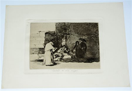Goya Y Lucientes Francisco Fuendetodos 1746 Bordeaux 1828 (Libri-Incisioni) "Caridad de una muger" Incisione (cm 15,5x20,5) tratta dalla serie "I Disastri".