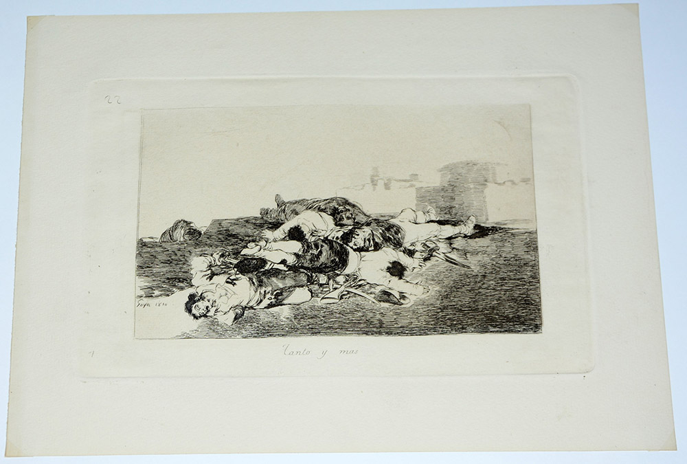 Goya Y Lucientes Francisco Fuendetodos 1746 Bordeaux 1828 (Libri-Incisioni) "Tanto y mas" Incisione (cm 15,8x21,8) tratta dalla serie "I Disastri", con il vecchio numero "1" in basso a sinistra.