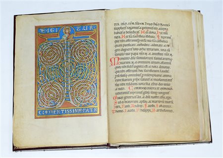 Das Berthold Sakramentar. Facsimile del secolo XIII. Akademische Druck - u. Verlagsanstalt, 1995.Legatura in piena pelle con profilo in metallo lavorato. Si allega il Commentario. Entro cofanetto in tela blu e pelle. Tiratura limitata.