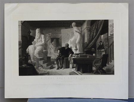 "Michel-ange Buonarroti". Incisione (foglio 745x950 mm), in bianco e nero.