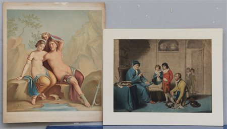 Lotto di due stampe a colori di soggetto differenti. Una in passpartout (lievi difetti).