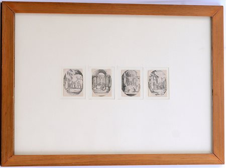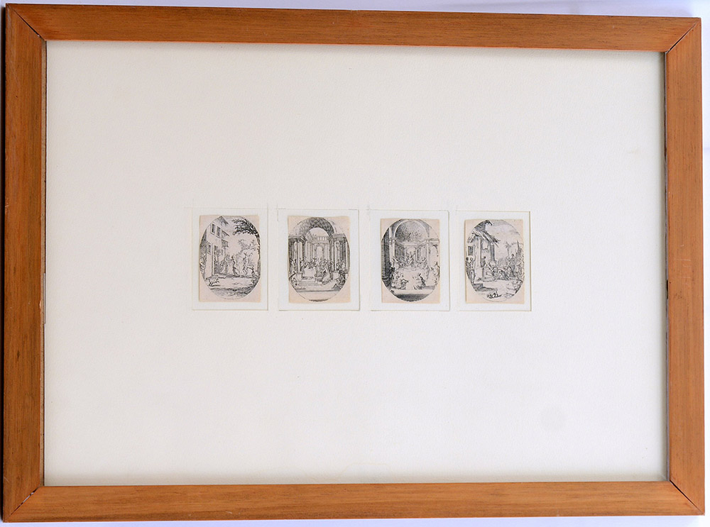 Jacques Calllot Nancy 1592 1635 "Quattro scene della piccola passione" Acquaforte (cm 24,5x34,5). In cornice