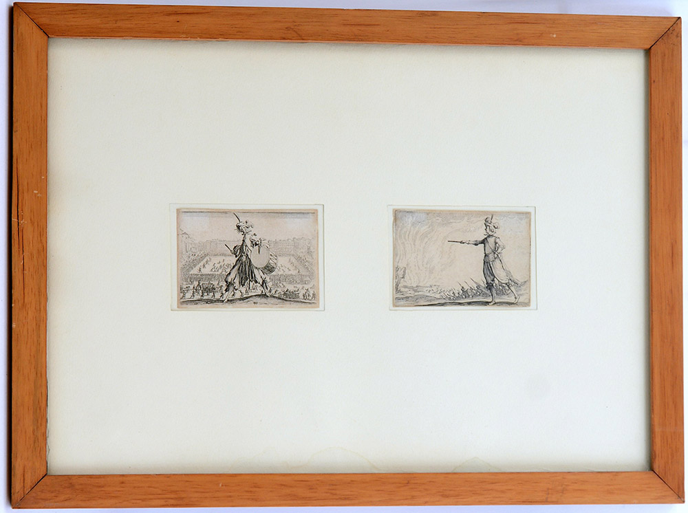 Jacques Calllot Nancy 1592 1635 "Due Capricci" Acquaforte (cm 24,5x34,5). In cornice