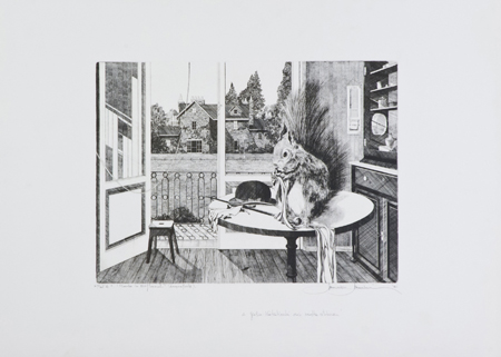 Maurizio Mariani Made in England, 1980 Acquaforte di cm. 29,5x40, su carta di cm. 50x70, es. P.A. Firma e data in basso a destra, titolo in basso a sinistra, dedica a persona in basso al centro.