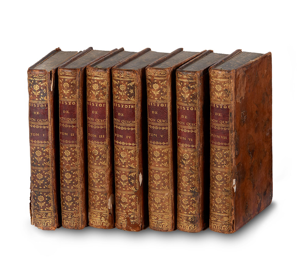 (Libri) Michel de Cervantes. Histoire de l'admirable Don Quichote... Amsterdam-Leipzig: Arkstée & Merkus, 1768. 7 volumi.