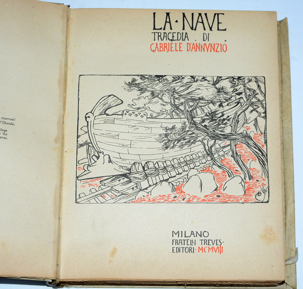 D'ANNUNZIO, Gabriele. La nave. Milano: Fratelli Treves, 1908. Volume 4to....