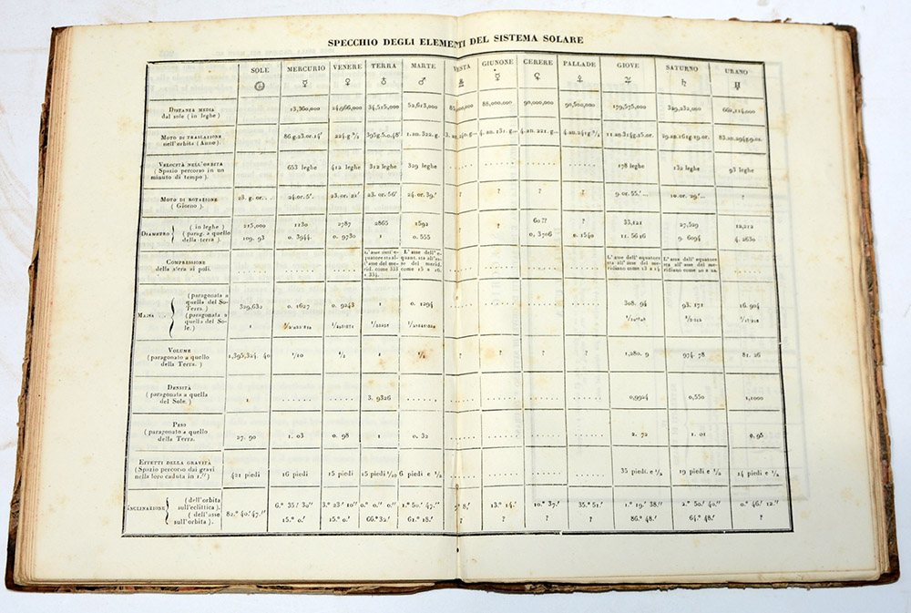 MARMOCCHI, Francesco Costantino. Corso di geografia universale sviluppato in cento lezioni e diviso in tre grandi parti. Firenze: per V. Battelli e Compagni, 1840-43. 6 volumi 4to. Carte e tavole di corredo nei volumi 1, 4, 6; (fioriture e macchie). Legatura non uniforme (2 volumi in mezza pelle, 4 in mezza tela) (difetti).