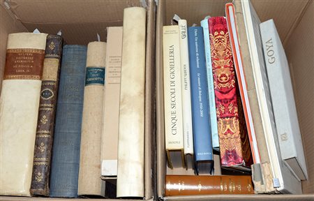 Lotto di due cartoni contenenti numerosi volumi di epoche e argomenti differenti, fra cui arte e arti applicate.