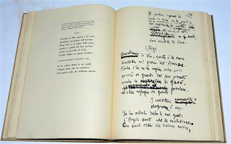 D'ANNUNZIO, Gabriele. La figlia di Jorio. Tragedia pastorale. Riprodotta integralmente per mandato di Giovanni Treccani. Milano: Emilio Bestetti - Editori d'Arte, 1938. Volume in folio. Legatura editoriale (dorso lievemente danneggiato). Esemplare 372/750.