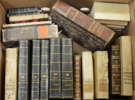Cartone contenente svariati volumi di diversa epoca, di argomento...
