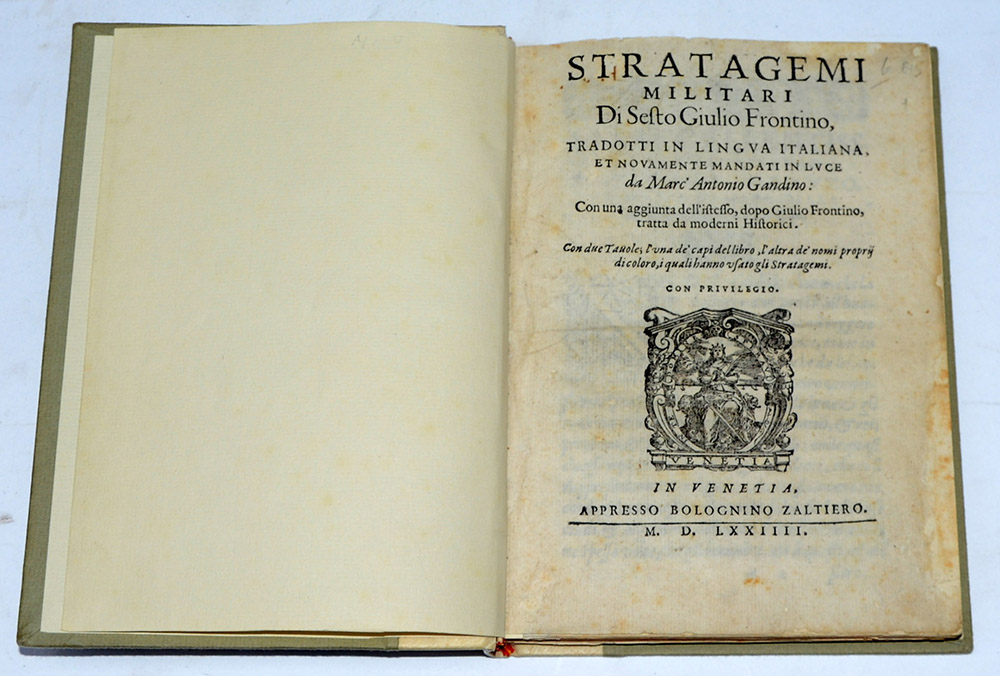 Lotto composto da: - FRONTINO, Sesto Giulio. Stratagemmi militari. Venezia:...