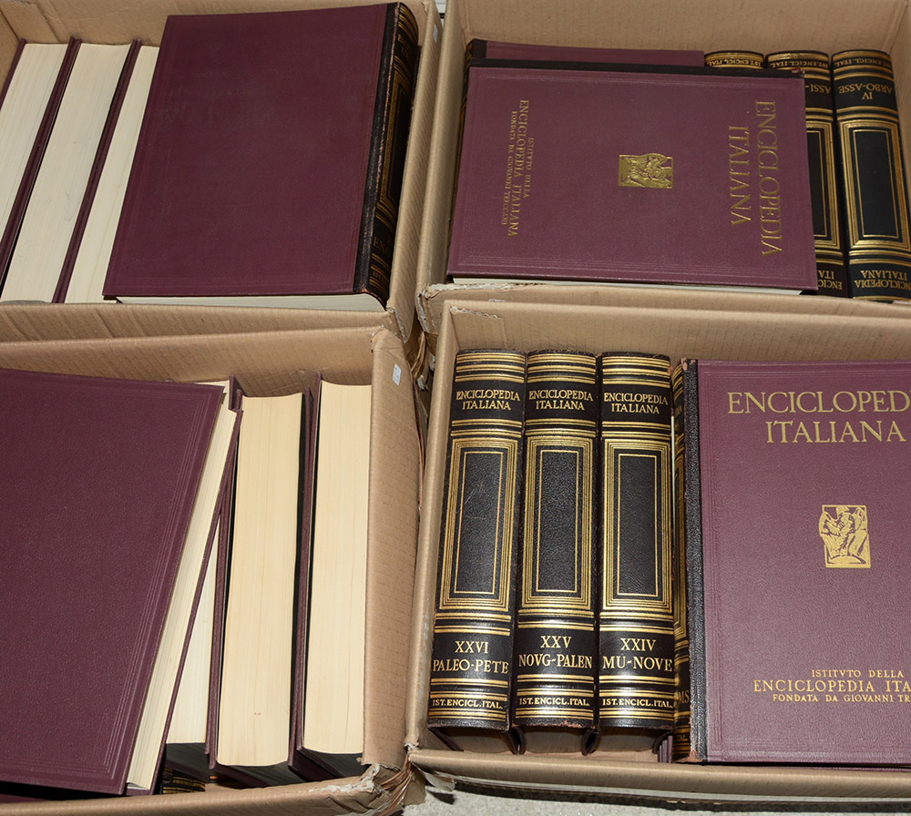 Enciclopedia Treccani, 40 volumi. Lotto in 5 cartoni (lievi difetti)