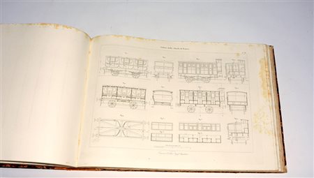 CELLINI, Francesco. Portafoglio dell'ingegnere delle Strade Ferrate. Roma: Ingegnere Cellini, 1848-50. Formato oblungo. Numerose incisioni in bianco e nero (fioriture). Legatura in mezza pelle e piatti marmorizzati (lievemente usurata).