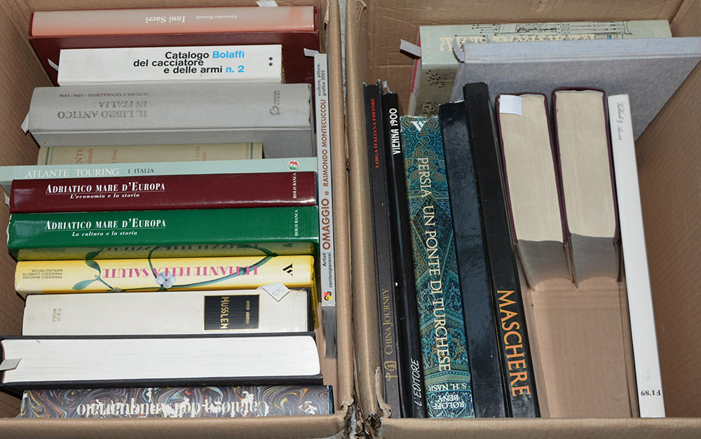 Lotto di due cartoni contenenti numerosi volumi di argomento eterogeneo.