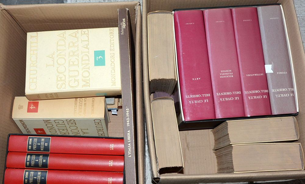 Lotto di numerosi volumi di argomento principalmente storico (lievi difetti). In due cartoni.
