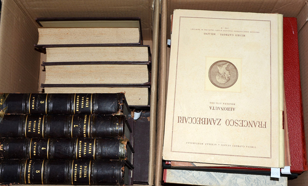 Due cartoni contenenti svariati volumi di diverso argomento (lievi difetti).