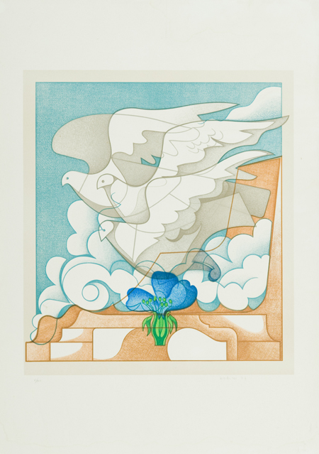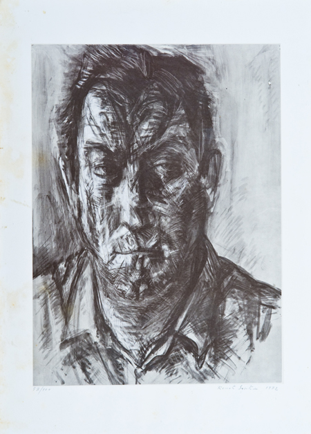 Bodini Floriano, Santini Renato Lotto unico di due Opere - "Floriano Bodini", Senza titolo, 1977, Litografia su carta, cm. 70x50, es. X/XXII, firma e data in basso a destra, tiratura in basso a sinistra, la carta presenta fioriture; - "Renato Santini", Volto, 1972, Litografia su carta, cm. 70x50, es. 57/100, firma e data in basso a destra, tiratura in basso a sinistra, la carta presenta fioriture.