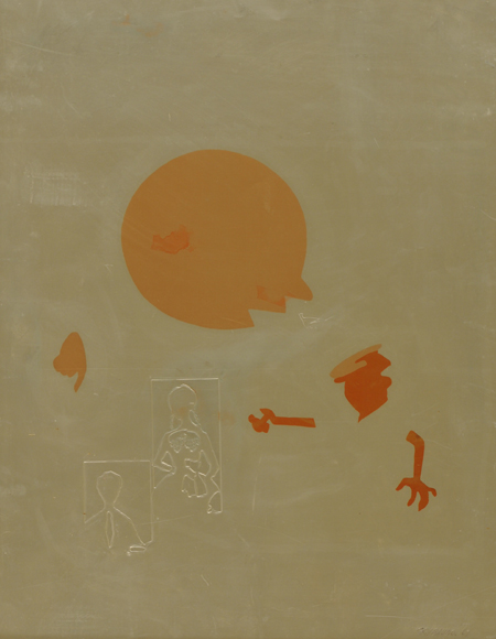 Ezio Gribaudo Torino 1929 Senza titolo, 1968 Interventi su alluminio, cm. 72x56 Firma e data in basso a destra.