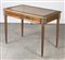 Scrittoio da centro in mogano a due cassetti con piano in pelle impresso in oro, filettato in ottone gambe scanalate e rastremate terminanti con piedi in ottone inizio del sec. XIX (cm 100x75x60)
