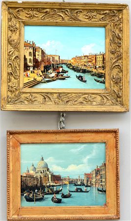Lotto di due dipinti ad olio raffiguranti scorci di Venezia, autori e misure...