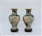 Coppia di vasi cloisonné decorati con motivi floreali su fondo blu, con basi...